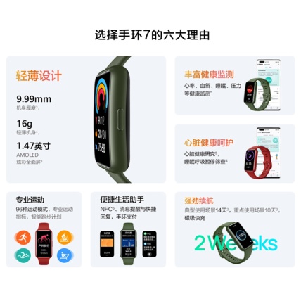 【任意拼团】华为手环 7 标准版 曜石黑 两周长续航